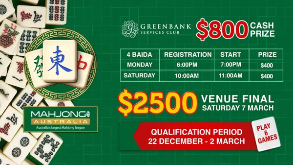 Australia Mahjong League have developed the first ever Mahjong League in Australia with uniform rules, point scoring and fantastic cash prizes!